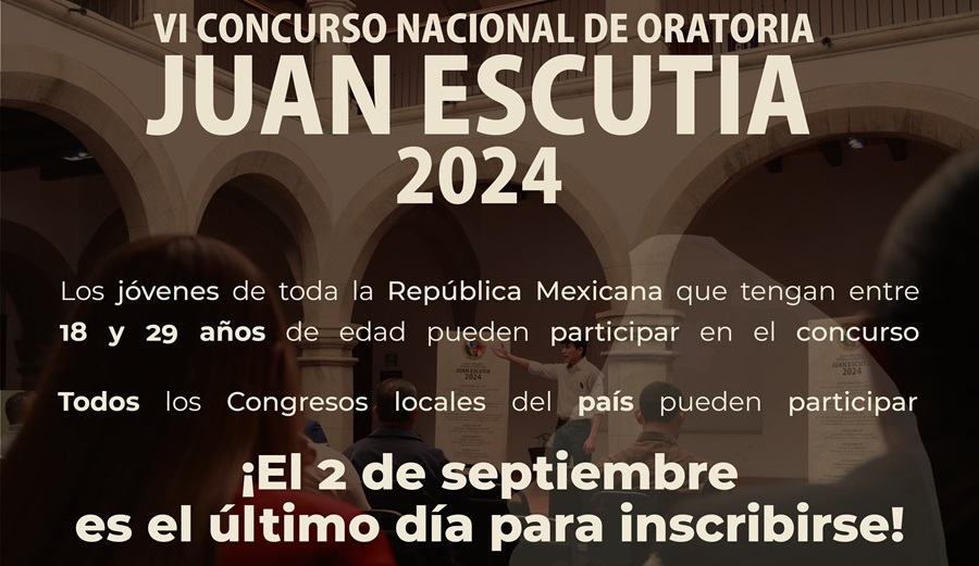 Jóvenes talentosos de todo el País están invitados a participar en la sesta edición del Concurso Nacional de Oratoria Juan Escutia, dónde puede participar un representante por identidad Federativa que cuenten con 18 a 29 años de edad.