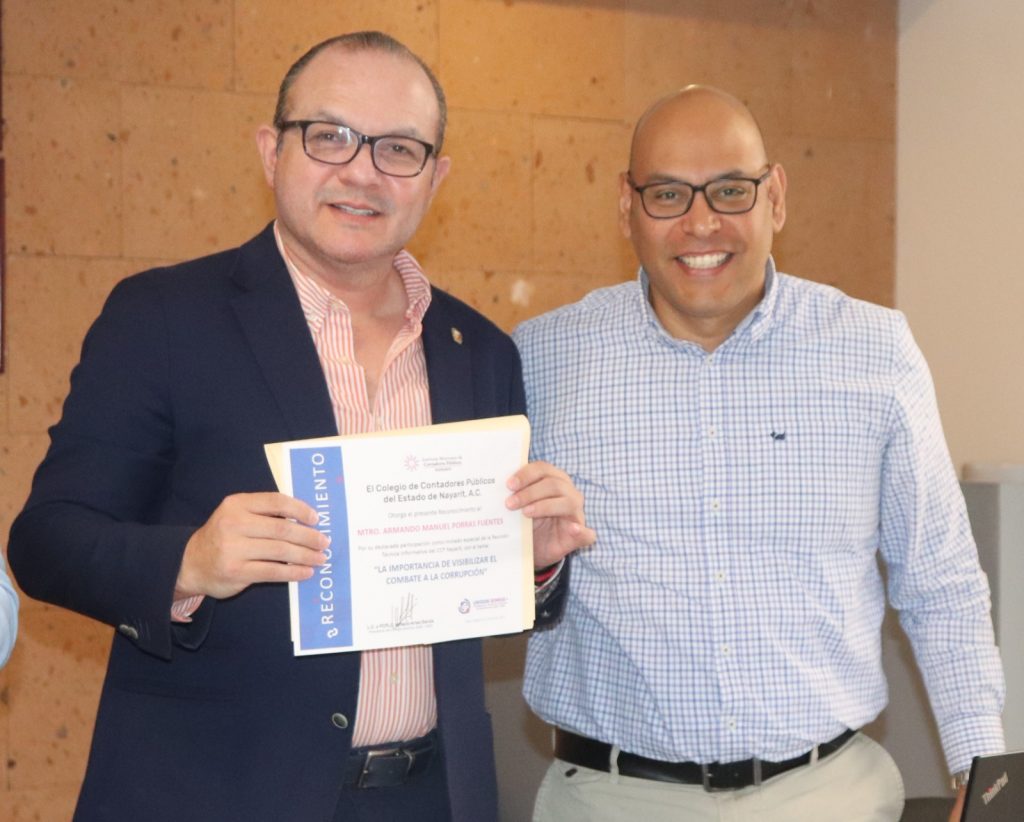 En su oportunidad el invitado al desayuno técnico del mes de abril, Armando Manuel Porras Fuentes, Fiscal Anticorrupción del Estado de Nayarit; explicó a los contadores colegiados él porque es importante visibilizar el combate a la corrupción en el ámbito público y también en las instituciones privadas.