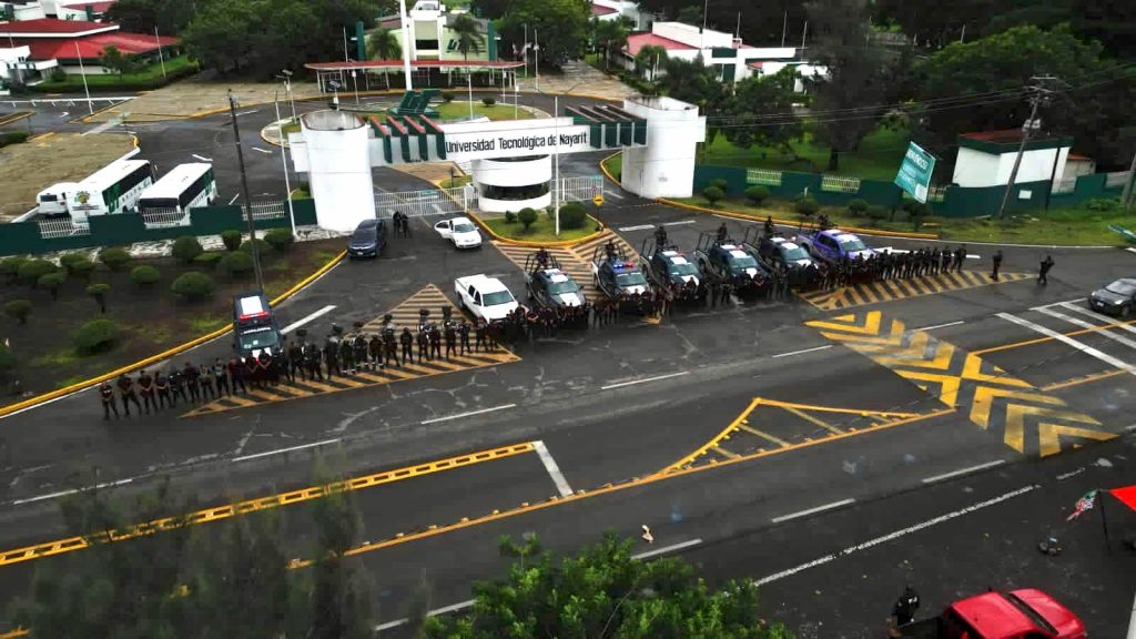 La Secretaría de Seguridad y Protección Ciudadana a través de la Dirección General de la Policía Estatal, llevan a cabo el operativo de seguirdad y vigilancia para el evento «Feria del Elote 2023» en el municipio de Xalisco.