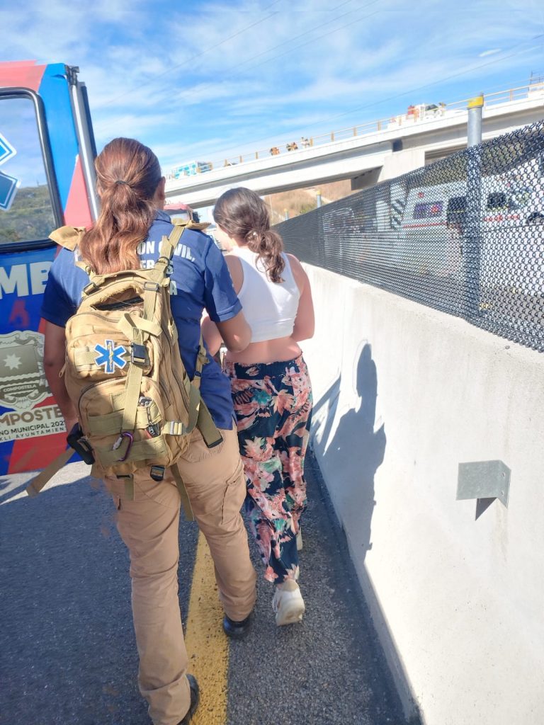 Cabe señalar que el lugar solo resultaron daños materiales, encontrándose una femenina con lesiones leves, misma que ya es auxiliada por el personal paramédico.