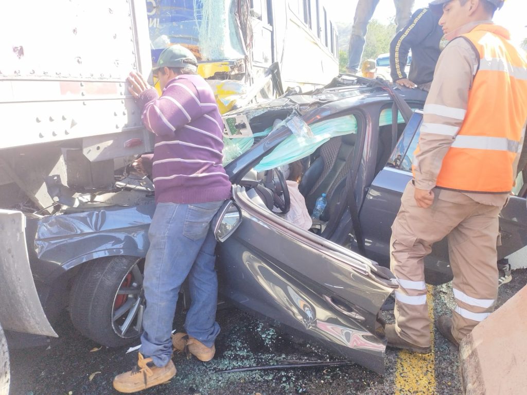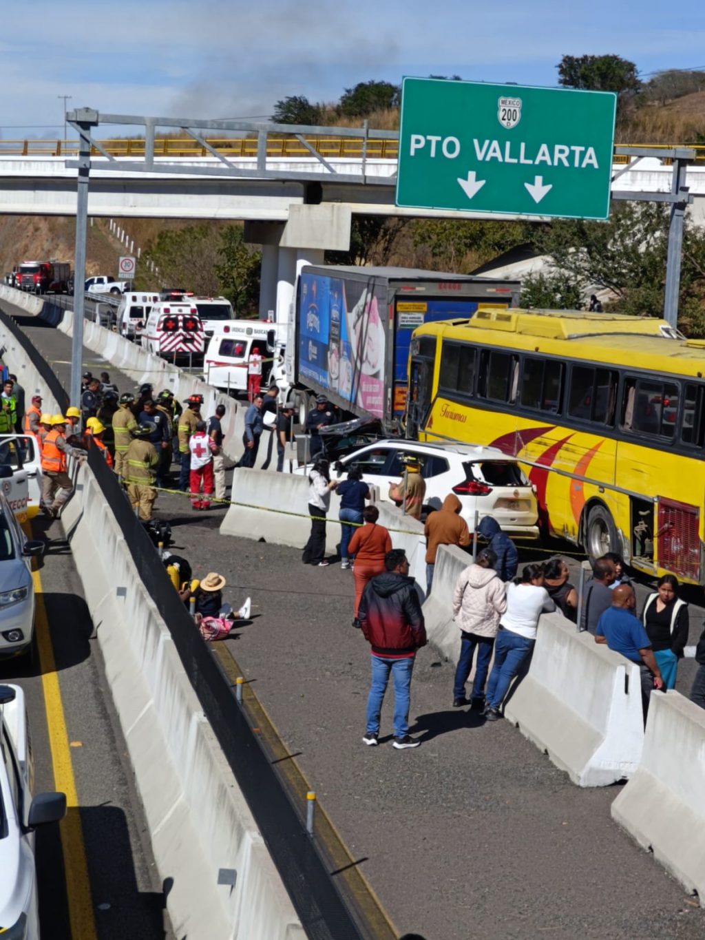 Se informa que Policía Estatal, Bomberos de Nayarit y personal de la Unidad Médica Táctica de la Policía Estatal en coordinación con la Cruz Roja y Protección Civil Compostela trabajan en la atención del hecho de tránsito entre un autobús pasajero y dos vehículos, ocurrido en la autopista 70 D con dirección Jala – Compostela, sobre el kilómetro 54.