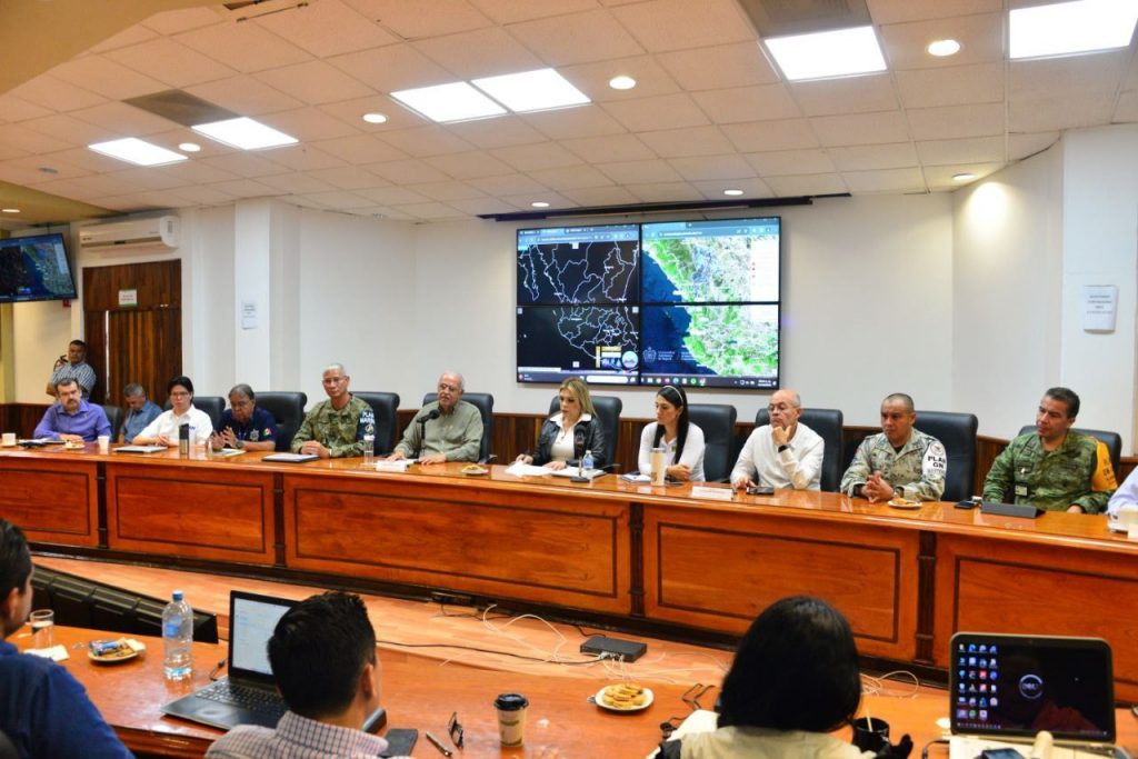 Reunidos en la Sala de Juntas de la Secretaría de Desarrollo Sustentable, el ejecutivo estatal en unidad con integrantes del gabinete nayarita y federal, destacó el trabajo realizado por elementos de Seguridad Pública y Vial, de Salud, Bomberos, Protección Civil, limpieza de carreteras y muchos trabajadores más, antes, durante y después del paso del huracán categoría 4, porque sus acciones permitieron dar certeza ciudadana a quienes en caso de requerir alguna atención, sabían que contaban con personal capacitado para atenderlos.