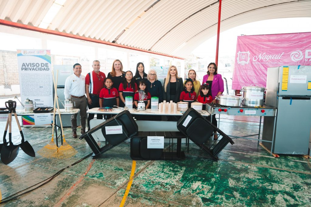 Niñas, niños, adolescentes, madres, padres de familia y docentes de 42 planteles educativos del municipio de Tepic que recibieron utensilios, insumos y materiales para el equipamiento de sus desayunadores y huertos escolares, agradecieron a la presidenta del Sistema DIF Nayarit, doctora Beatriz Estrada Martínez, por otorgarles una mejor calidad en su aprendizaje con alimentos saludables y herramientas que refuerzan y amplían sus conocimientos.
