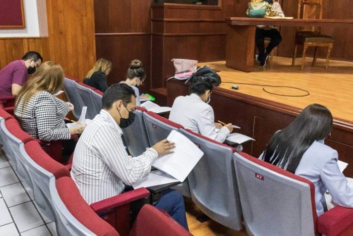 Como parte del concurso de oposición para designar personal jurídico de dos Juzgados Laborales del Poder Judicial, este lunes cuarenta y un Abogadas y Abogados presentaron un examen de conocimientos teóricos.