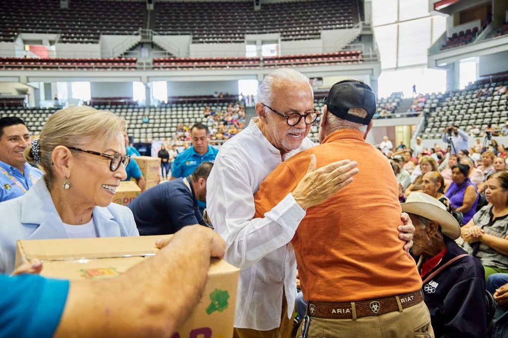 Durante el acto de entrega directa de dotaciones en el auditorio Amado Nervo, la señora Norma Padilla Soria, beneficiaria de Tepic, manifestó la emoción de recibir sus paquetes alimentarios, agradeciendo a la presidenta del Corazón de Tu Gobierno, doctora Beatriz Estrada Martínez y a su esposo, el gobernador Miguel Ángel Navarro Quintero, por la ayuda que se le está brindando y que aporta a estabilizar sus recursos.