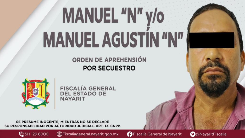 En colaboración con la Fiscalía General del estado de Durango, la Fiscalía General de Nayarit a través de la Unidad Especializada en Combare al Secuestro -UECS- ejecutó una orden de aprehensión en la localidad Llano de Mariquitas, municipio de Acaponeta contra Manuel “N” y/o Manuel Agustín “N”, por su presunta participación en hechos que según apreciación de la ley configuran el delito de secuestro, cometido en el estado de Durango en agravio de una persona de sexo masculino de identidad reservada.