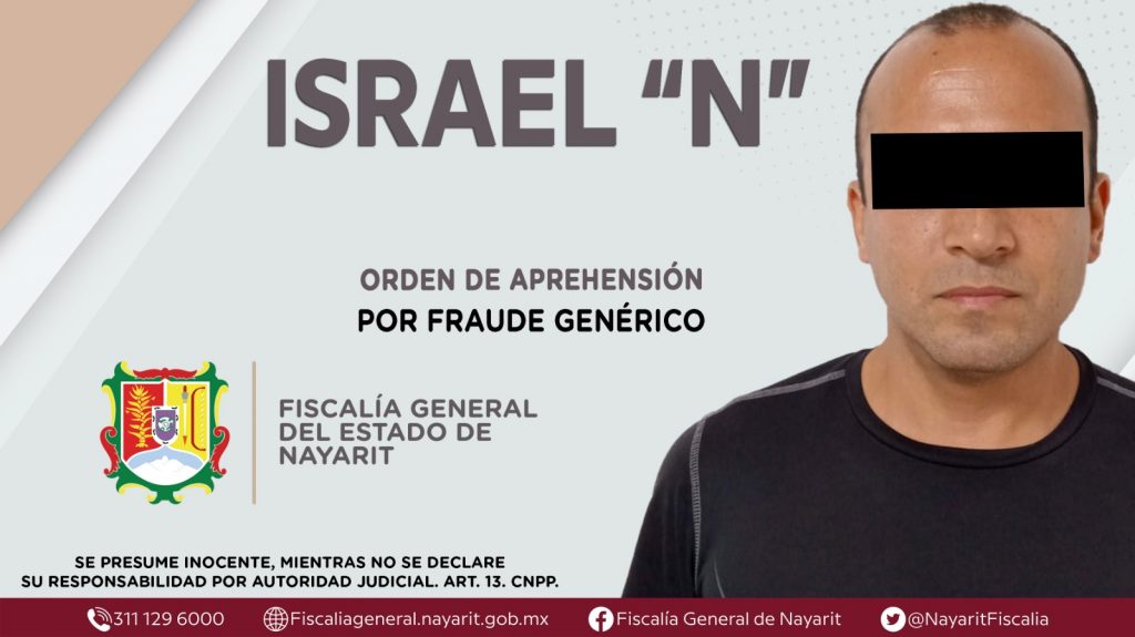 Con la colaboración de la Fiscalía General del estado de Guerrero, elementos de la Agencia de Investigación Criminal de Nayarit ejecutaron una orden de aprehensión en la ciudad de Acapulco, Guerrero contra Israel “N”, por su presunta participación en hechos que según apreciación de la ley encuadran el delito de fraude genérico.