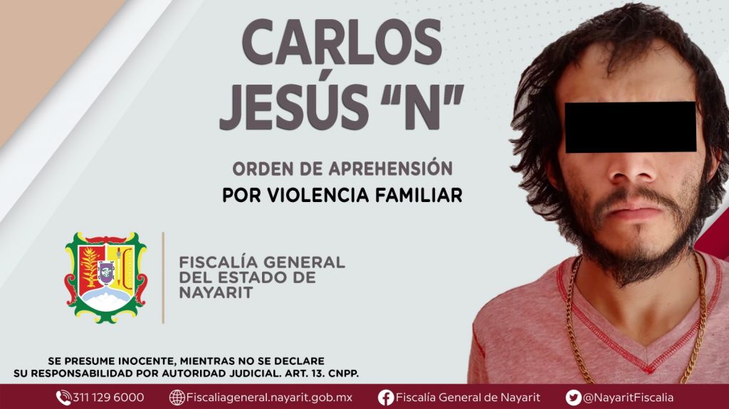 La Fiscalía General de Nayarit a través de la Agencia de Investigación Criminal dio cumplimiento a una orden de aprehensión en la localidad Camichín de Jauja, municipio de Tepic contra Carlos Jesús “N”, por su presunta participación en hechos que según apreciación de la ley encuadran el delito de violencia familiar, cometido en agravio de una persona de sexo masculino de identidad reservada.