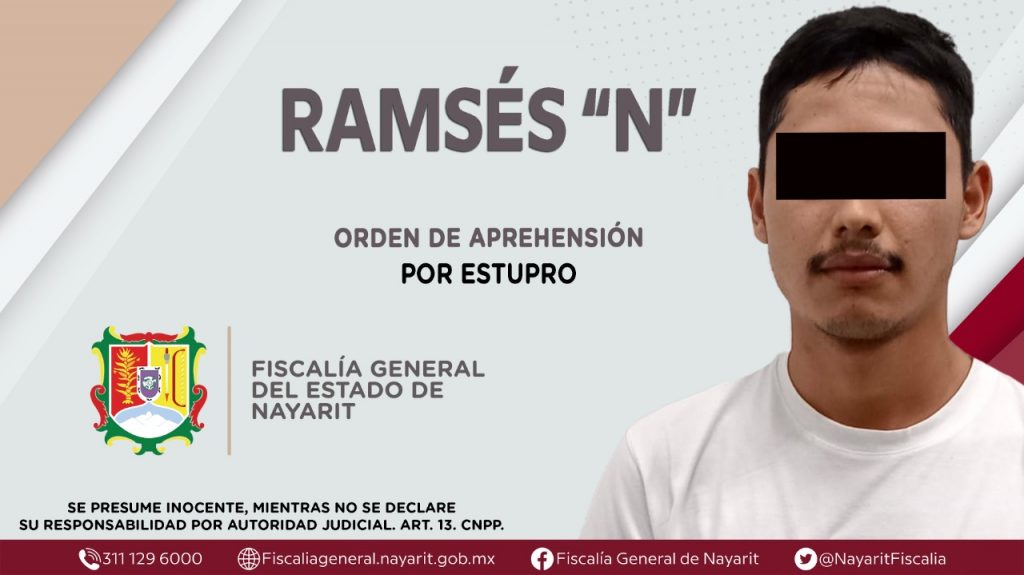 La Fiscalía General de Nayarit a través de la Agencia de Investigación Criminal ejecutó una orden de aprehensión en la localidad Francisco I. Madero -Puga-, municipio de Tepic contra Ramsés “N”, por su presunta participación en hechos que según apreciación de la ley encuadran el delito de estupro, cometido en agravio de una menor de edad de identidad reservada.