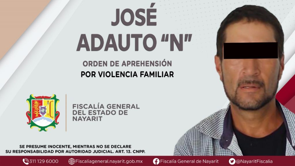 La Fiscalía General de Nayarit a través de la Agencia de Investigación Criminal cumplimentó, en el municipio de Ixtlán del Río, una orden de aprehensión contra José Adauto “N”, por su probable responsabilidad penal en hechos que según valoración de la ley configuran el delito de violencia familiar, cometido en agravio de una persona de sexo femenino de identidad reservada.