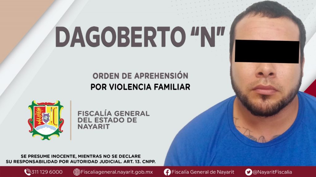 La Fiscalía General de Nayarit a través de la Agencia de Investigación Criminal ejecutó una orden de aprehensión en el municipio de Rosamorada contra Dagoberto “N”, originario de Acaponeta y vecino de Rosamorada, por su presunta participación en hechos que según apreciación de la ley encuadran el delito de violencia familiar, cometido en agravio de una persona de sexo femenino de identidad reservada.