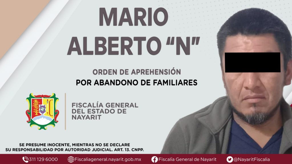 Elementos de la Agencia de Investigación Criminal de Nayarit ejecutaron una orden de aprehensión en el municipio de Ruiz contra Mario Alberto “N”, por su presunta participación en hechos que según apreciación de la ley encuadran el delito de abandono de familiares, cometido en agravio de una persona menor de dieciocho años de identidad reservada.