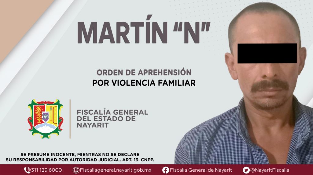 La Fiscalía General del Estado a través de la Agencia de Investigación Criminal dio cumplimiento a una orden de aprehensión en el municipio de Ruiz contra Martín “N”, por su presunta participación en hechos que según apreciación de la ley encuadran el delito de violencia familiar, cometido en agravio de una mujer de identidad reservada.