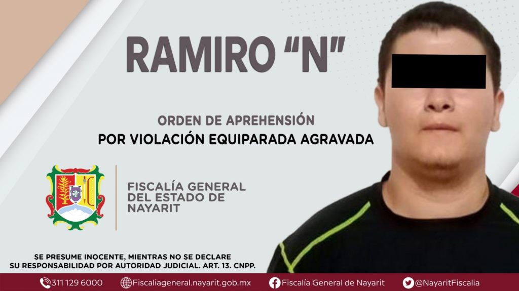 La Fiscalía General de Nayarit a través de la Agencia de Investigación Criminal ejecutó una orden de aprehensión en el municipio de Ruiz contra Ramiro “N”, por su presunta participación en hechos que según apreciación de la ley encuadran el delito de violación equiparada agravada, cometido en agravio de una adolescente de identidad reservada.