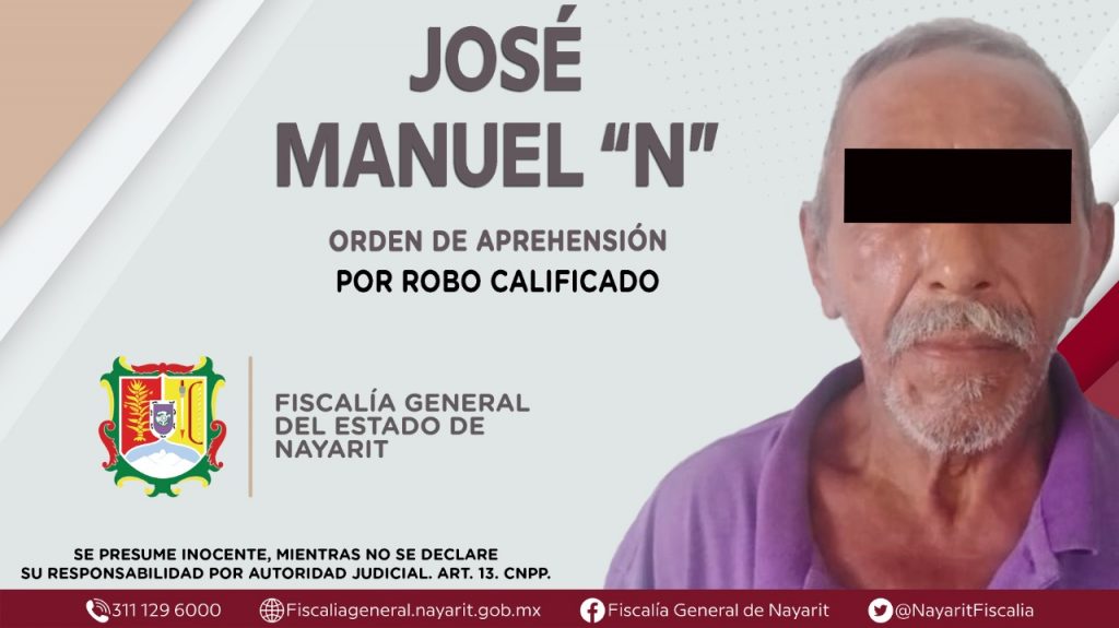 La Fiscalía General de Nayarit a través de la Agencia de Investigación Criminal ejecutó una orden de aprehensión en el poblado Jolotemba, municipio de San Blas contra José Manuel “N”, por su presunta participación en hechos que según apreciación de la ley encuadran el delito de robo calificado, cometido en agravio de la persona moral Abican, S. A. de C. V.
