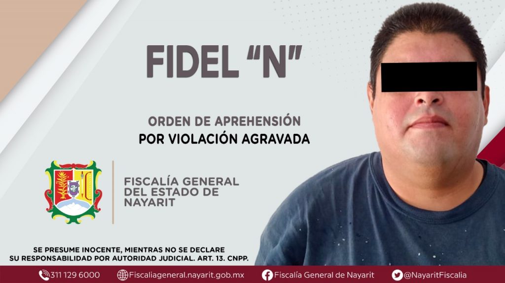 La Fiscalía General de Nayarit a través de la Agencia de Investigación Criminal ejecutó una orden de aprehensión en el poblado Santa Cruz de Miramar, municipio de San Blas contra Fidel “N”, originario y vecino de la localidad donde fue aprehendido, por su presunta participación en hechos que según apreciación de la ley encuadran el delito de violación agravada, cometido en agravio de una menor de edad de identidad reservada.