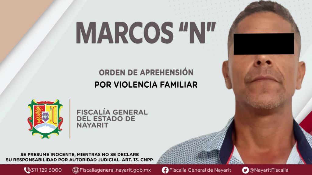 La Fiscalía General del Estado a través de la Agencia de Investigación Criminal dio cumplimiento a una orden de aprehensión en el municipio de San Blas contra Marcos “N”, por su presunta participación en hechos que según apreciación de la ley configuran el delito de violencia familiar, cometido en agravio de una mujer de identidad reservada.