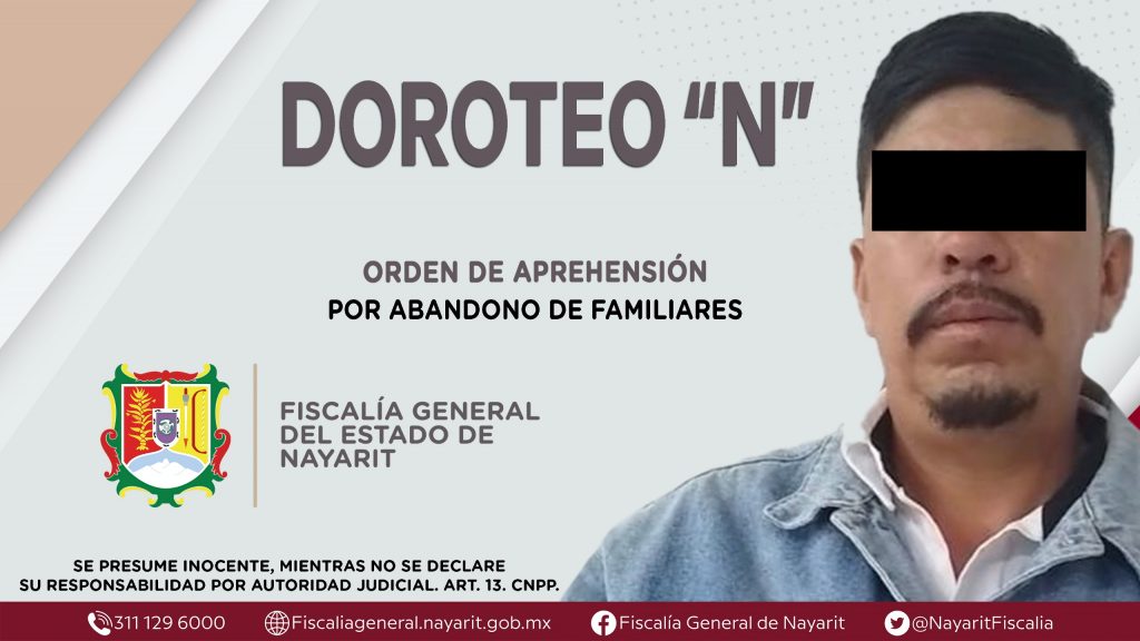 La Fiscalía General del Estado a través de la Agencia de Investigación Criminal cumplimentó una orden de aprehensión en el municipio de San Pedro Lagunillas contra Doroteo “N”, por su presunta participación en hechos que bajo apreciación de la ley configuran el delito de abandono de familiares, cometido contra tres niños de identidades reservadas.