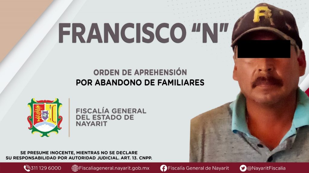 Elementos de la Agencia de Investigación Criminal dieron cumplimiento a una orden de aprehensión en el poblado Villa Hidalgo, municipio de Santiago Ixcuintla contra Francisco “N”, quien es originario y vecino de la localidad donde fue detenido, por su presunta participación en hechos que bajo la apreciación de la ley configuran el delito de abandono de familiares, cometido en agravio de un menor de dieciocho años de identidad reservada.