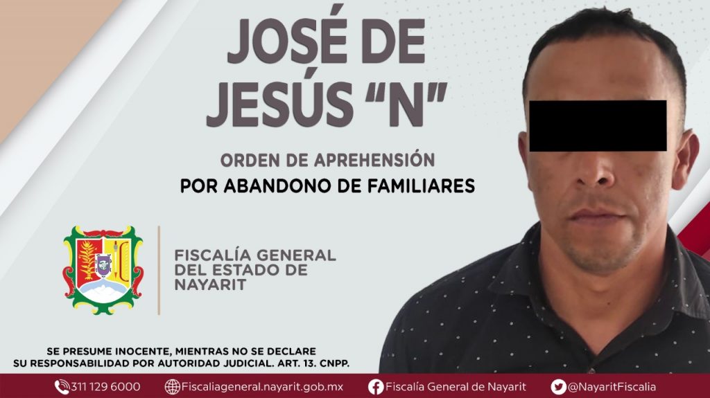 La Fiscalía General del Estado a través de la Agencia de Investigación Criminal dio cumplimiento a una orden de aprehensión en la localidad Estación Yago, municipio de Santiago Ixcuintla contra José de Jesús “N”, por su presunta participación en hechos que bajo la apreciación de la ley encuadran el delito de abandono de familiares, cometido en agravio de una persona menor de dieciocho años de identidad reservada.