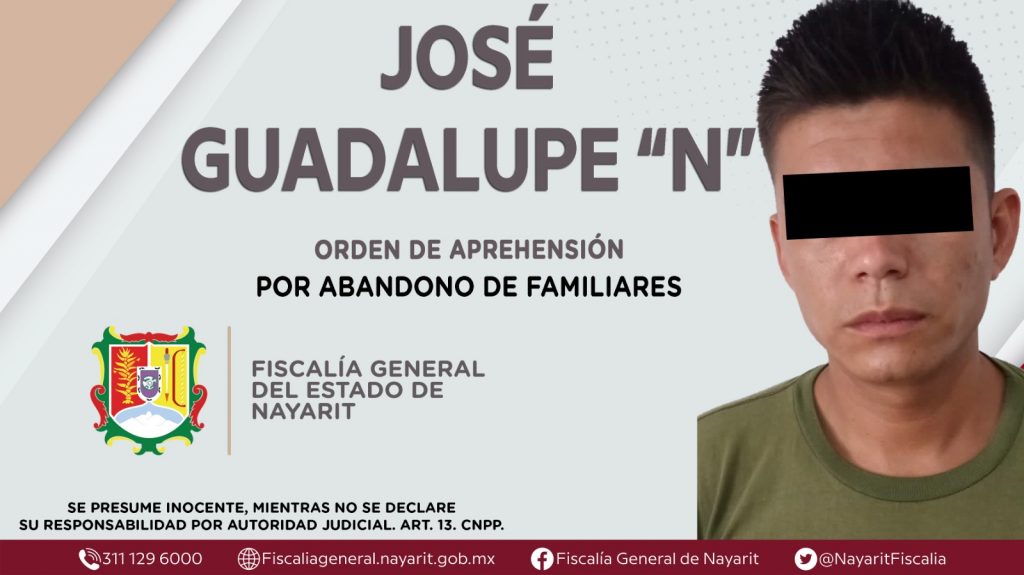 Elementos de la Agencia de Investigación Criminal de Nayarit ejecutaron una orden de aprehensión en el poblado Villa Hidalgo, municipio de Santiago Ixcuintla contra José Guadalupe “N”, por su presunta participación en hechos que según apreciación de la ley encuadran el delito de abandono de familiares, cometido en agravio de una persona menor de dieciocho años cuya identidad es reservada.