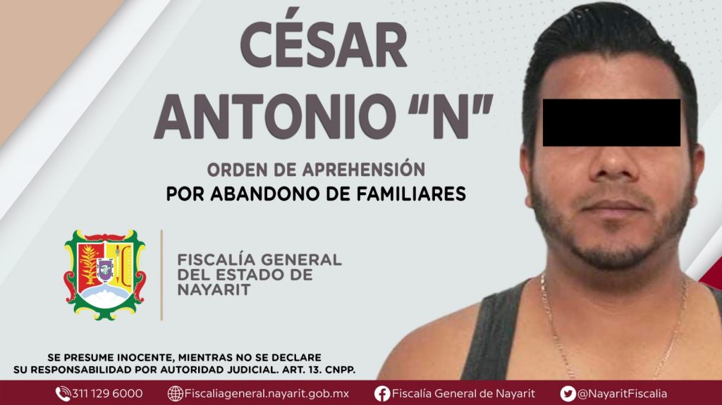 Elementos de la Agencia de Investigación Criminal de Nayarit ejecutaron una orden de aprehensión en el municipio de Santiago Ixcuintla contra César Antonio “N”, por su presunta participación en hechos que según apreciación de la ley configuran el delito de abandono de familiares, cometido en agravio de una niña de identidad reservada.