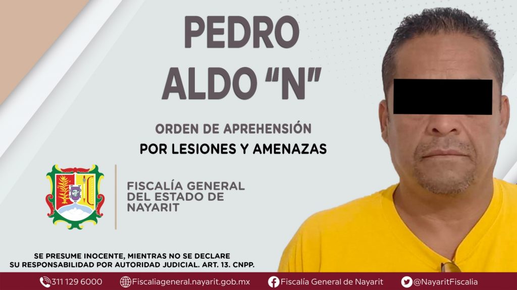 Elementos de la Agencia de Investigación Criminal de Nayarit ejecutaron una orden de aprehensión en el municipio de Santiago Ixcuintla contra Pedro Aldo “N”, por su presunta participación en hechos que según apreciación de la ley encuadran los delitos de lesiones y amenazas, cometidos en agravio de una mujer de identidad reservada.