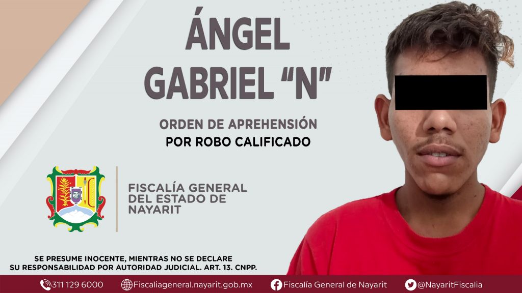 Elementos de la Agencia de Investigación Criminal de Nayarit ejecutaron una orden de aprehensión en el municipio de Santiago Ixcuintla contra Ángel Gabriel “N”, por su presunta participación en hechos que según apreciación de la ley configuran el delito de robo calificado, cometido en menoscabo de una persona de sexo masculino de identidad reservada.