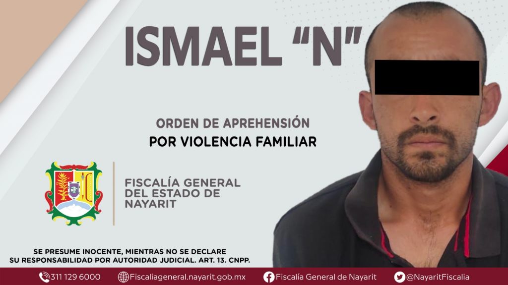 La Fiscalía General de Nayarit a través de la Agencia de Investigación Criminal dio cumplimiento a una orden de aprehensión en la localidad Estación Yago, municipio de Santiago Ixcuintla contra Ismael “N”, por su presunta participación en hechos que según apreciación de la ley encuadran el delito de violencia familiar, cometido en agravio de una persona de sexo femenino de identidad reservada.