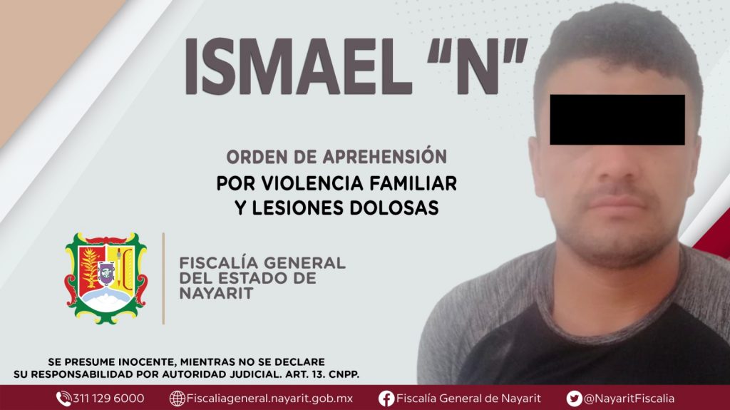Elementos de la Agencia de Investigación Criminal dieron cumplimiento a una orden de aprehensión en el municipio de Tecuala contra Ismael “N”, por su presunta participación en hechos que bajo la apreciación de la ley configuran los delitos de violencia familiar y lesiones dolosas, en agravio de una persona de sexo femenino de identidad reservada.