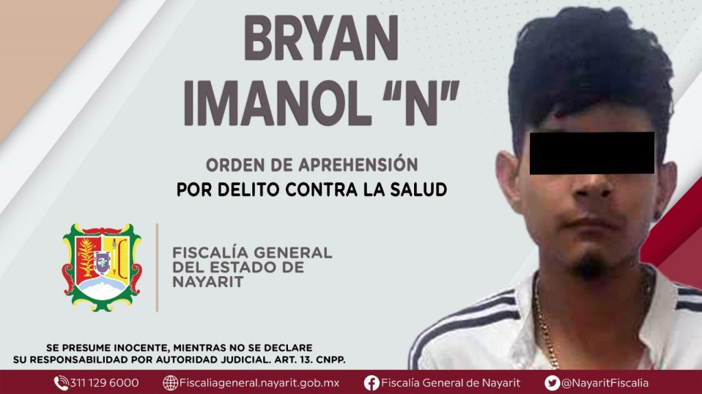La Fiscalía General de Nayarit a través de la Agencia de Investigación Criminal ejecutó una orden de aprehensión en la capital nayarita contra Bryan Imanol “N”, por su presunta participación en hechos que según apreciación de la ley encuadran el delito contra la salud en su modalidad de narcomenudeo -en su hipótesis de posesión de estupefacientes (marihuana)-, cometido en agravio de la sociedad.