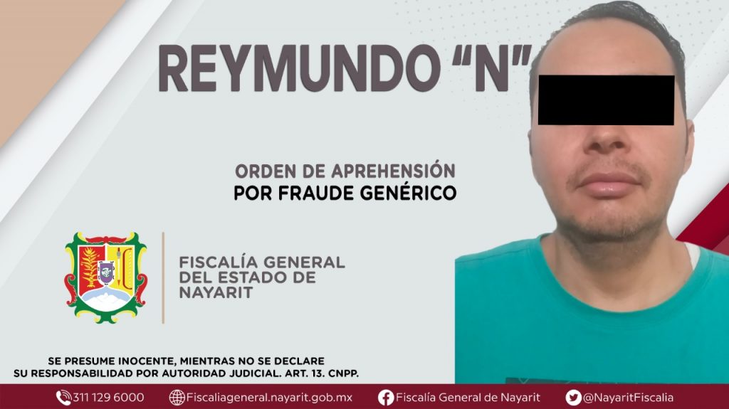 En la capital nayarita, la Fiscalía General de Nayarit a través de la Agencia de Investigación Criminal dio cumplimiento a una orden de aprehensión contra Reymundo “N”, originario y vecino de la ciudad de Tepic, por su presunta participación en hechos que según apreciación de la ley encuadran el delito de fraude genérico, cometido en agravio de una persona de sexo masculino de identidad reservada.