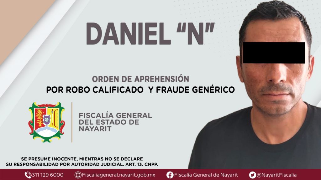 Elementos de la Agencia de Investigación Criminal de Nayarit ejecutaron una orden de aprehensión en el municipio de Tuxpan contra Daniel “N”, por su presunta participación en hechos que según apreciación de la ley configuran el delito de robo calificado y fraude genérico, cometidos en agravio de una persona de sexo femenino de identidad reservada.