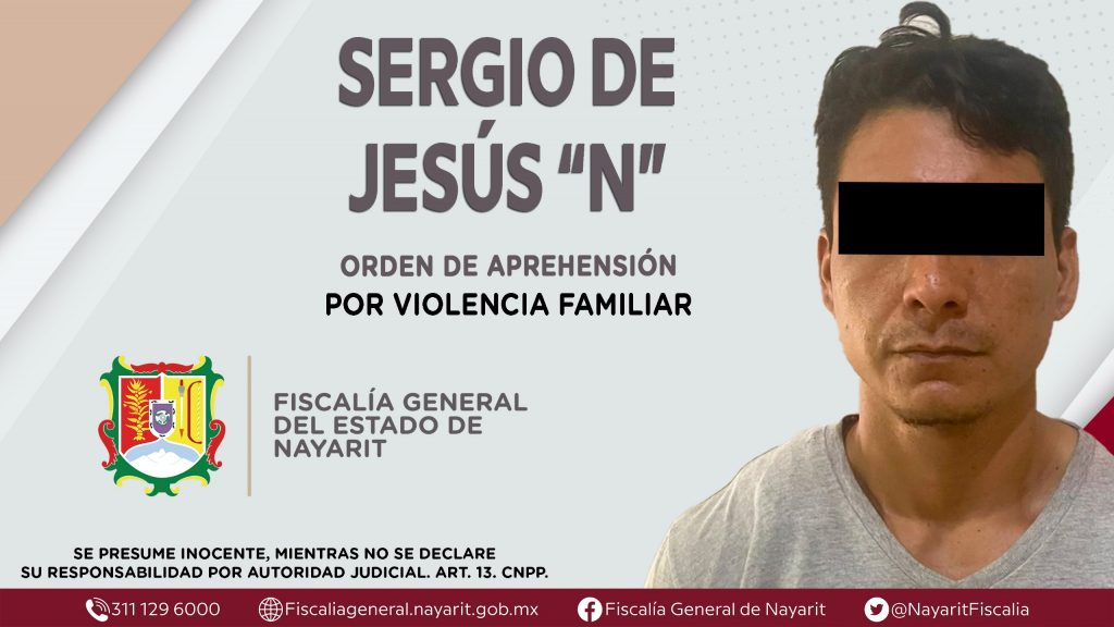 La Fiscalía General del Estado a través de la Agencia de Investigación Criminal dio cumplimiento a una orden de aprehensión en el municipio de Tuxpan contra Sergio de Jesús “N”, por su presunta participación en hechos que según apreciación de la ley configuran el delito de violencia familiar, cometido en agravio de una persona de sexo femenino de identidad reservada.