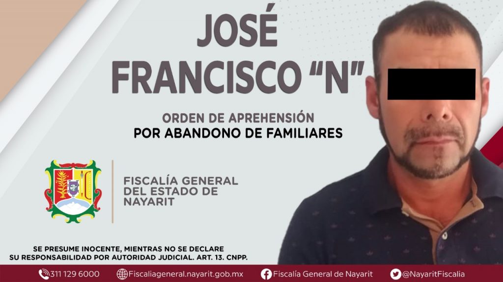 La Fiscalía General de Nayarit a través de la Agencia de Investigación Criminal dio cumplimiento a una orden de aprehensión en el municipio de Xalisco contra José Francisco “N”, originario y vecino de la municipalidad donde fue aprehendido, por su presunta participación en hechos que según apreciación de la ley encuadran el delito de abandono de familiares, cometido en agravio de un menor de edad de identidad reservada.