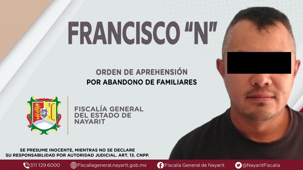 La Fiscalía General del Estado a través de la Agencia de Investigación Criminal cumplimentó una orden de aprehensión en el municipio de Xalisco contra Francisco “N”, por su presunta participación en hechos que bajo apreciación de la ley configuran el delito de abandono de familiares, cometido en agravio de un niño cuya identidad se reserva.