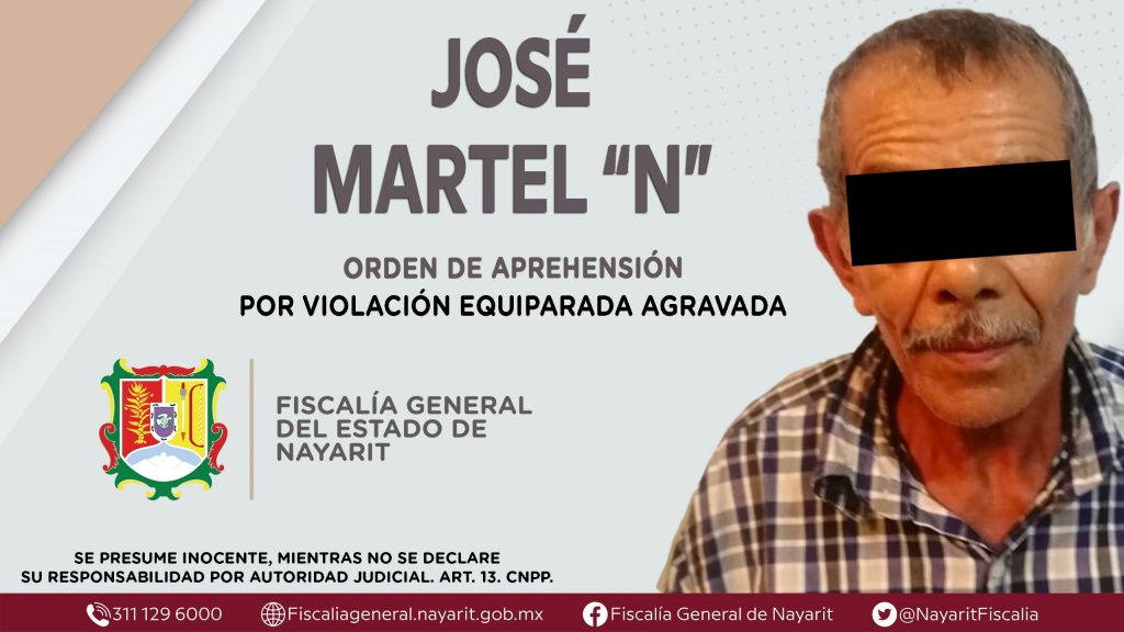 Elementos de la Agencia de Investigación Criminal de Nayarit ejecutaron una orden de aprehensión en el municipio de Xalisco contra José Martel “N”, por su presunta participación en hechos que según apreciación de la ley encuadran el delito de violación equiparada agravada, cometido en contra de una niña de identidad reservada.
