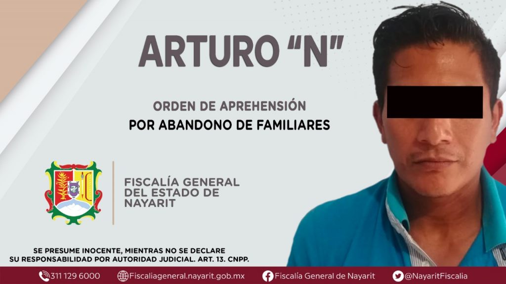 La Fiscalía General de Nayarit a través de la Agencia de Investigación Criminal ejecutó una orden de aprehensión en la localidad San Cayetano contra Arturo “N”, por su presunta participación en hechos que según apreciación de la ley encuadran el delito de abandono de familiares, cometido en agravio de tres menores de edad de identidades reservadas.