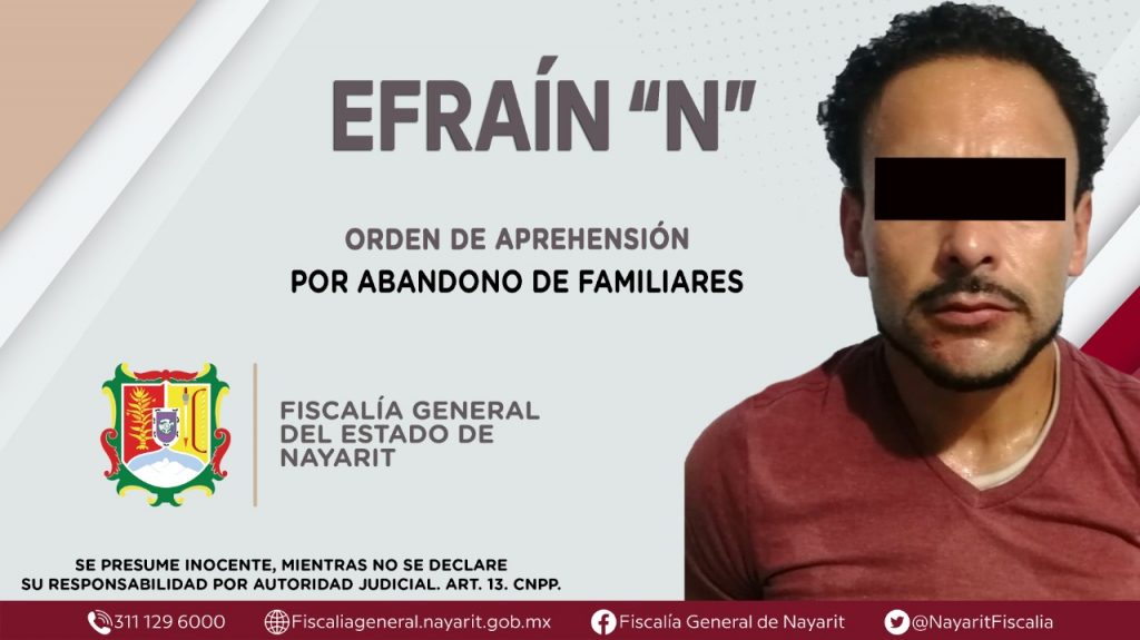 La Fiscalía General de Nayarit a través de la Agencia de Investigación Criminal ejecutó una orden de aprehensión en la ciudad de Tepic contra Efraín “N”, por su presunta participación en hechos que según apreciación de la ley encuadran el delito de abandono de familiares, cometido en agravio de una menor de edad de identidad reservada.