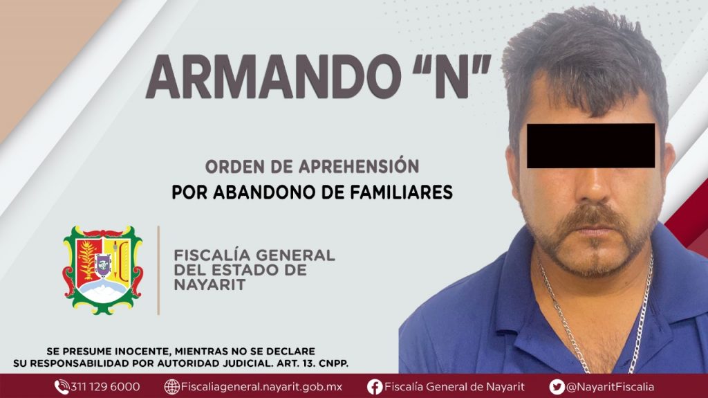 Elementos de la Agencia de Investigación Criminal de Nayarit ejecutaron una orden de aprehensión en la localidad Santa Cruz de Miramar, municipio de San Blas contra Armando “N”, por su presuntiva responsabilidad penal en hechos que la ley califica como delito de abandono de familiares, cometido en agravio de cuatro menores de edad de identidades reservadas.
