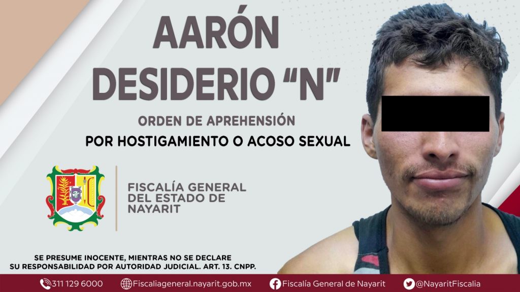Elementos de la Agencia de Investigación Criminal de Nayarit ejecutaron una orden de aprehensión en la ciudad de Tepic contra Aarón Desiderio “N”, por su presunta participación en hechos que según apreciación de la ley encuadran el delito de hostigamiento o acoso sexual, en agravio de una adolescente de identidad reservada.