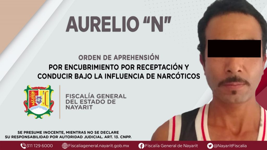 La Fiscalía General de Nayarit a través de la Agencia de Investigación Criminal ejecutó una orden de aprehensión en el poblado El Malinal, municipio de Xalisco, contra Aurelio “N”, por su presunta participación en hechos que según apreciación de la ley encuadran los delitos de encubrimiento por receptación y tránsito ejecutado por conductores de vehículos, en su modalidad de conducir bajo la influencia de narcóticos en agravio de la sociedad.