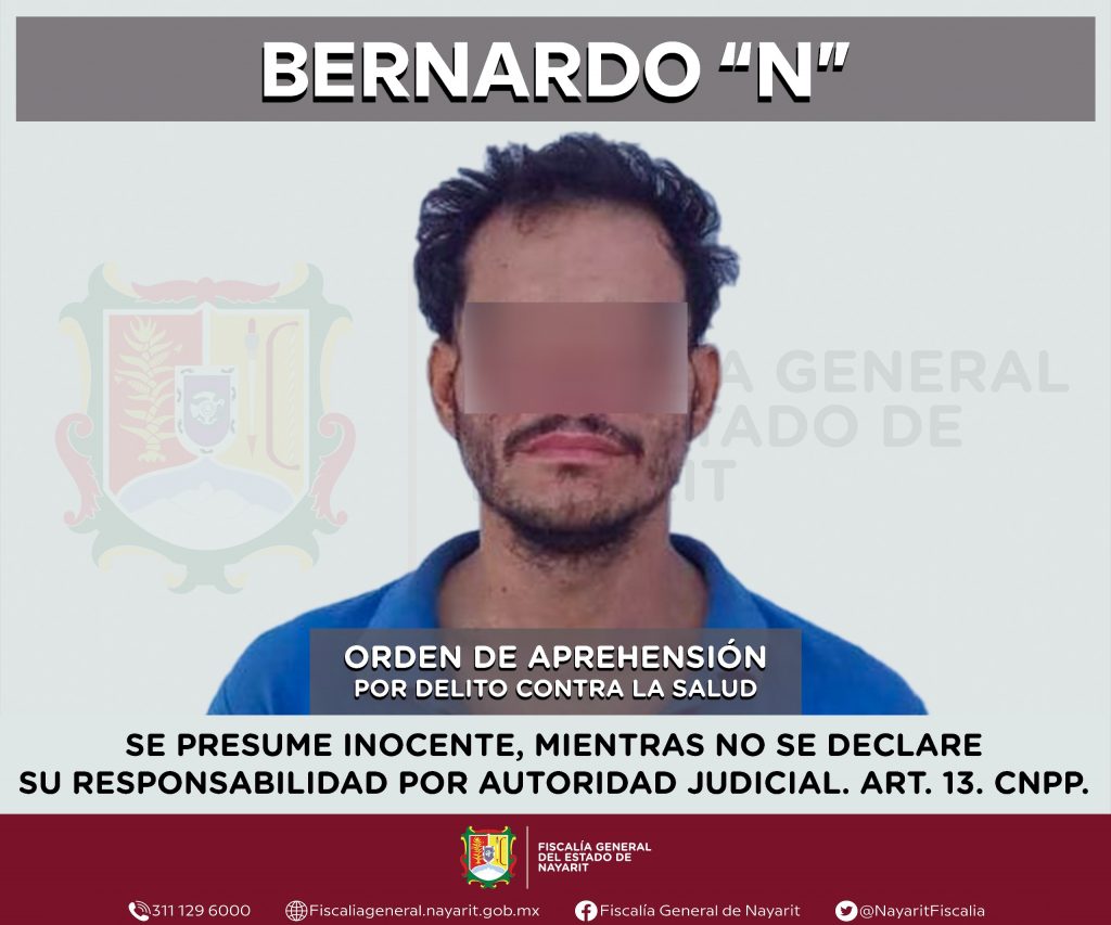 Elementos de la Agencia de Investigación Criminal de Nayarit ejecutaron una orden de aprehensión en la ciudad de Tepic contra Bernardo “N”, por su presunta participación en hechos que según apreciación de la ley encuadran el delito contra la salud en su modalidad de narcomenudeo -en la hipótesis de posesión de psicotrópicos-, cometido en agravio de la sociedad.