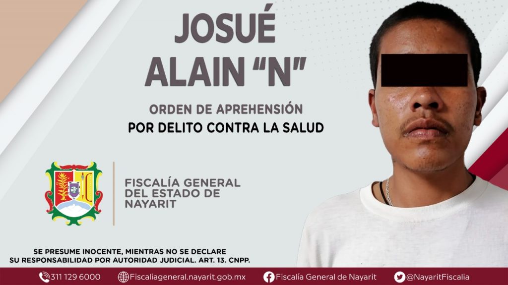 La Fiscalía General de Nayarit a través de la Agencia de Investigación Criminal ejecutó dos órdenes de aprehensión en la ciudad de Tepic contra Josué Alain “N”, por su presunta participación en hechos que según apreciación de la ley encuadran el delito contra la salud en su modalidad de narcomenudeo, en la hipótesis de posesión de psicotrópicos, cometido en agravio de la sociedad.