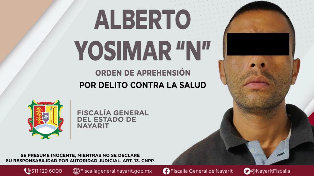 La Fiscalía General del Estado a través de la Agencia de Investigación Criminal dio cumplimiento a una orden de aprehensión en la capital nayarita contra Alberto Yosimar “N”, por su presunta participación en hechos que según valoración de la ley configuran el delito contra la salud en su modalidad de narcomenudeo -en la hipótesis de posesión de psicotropicos (metanfetaminas)-, en agravio de la sociedad.