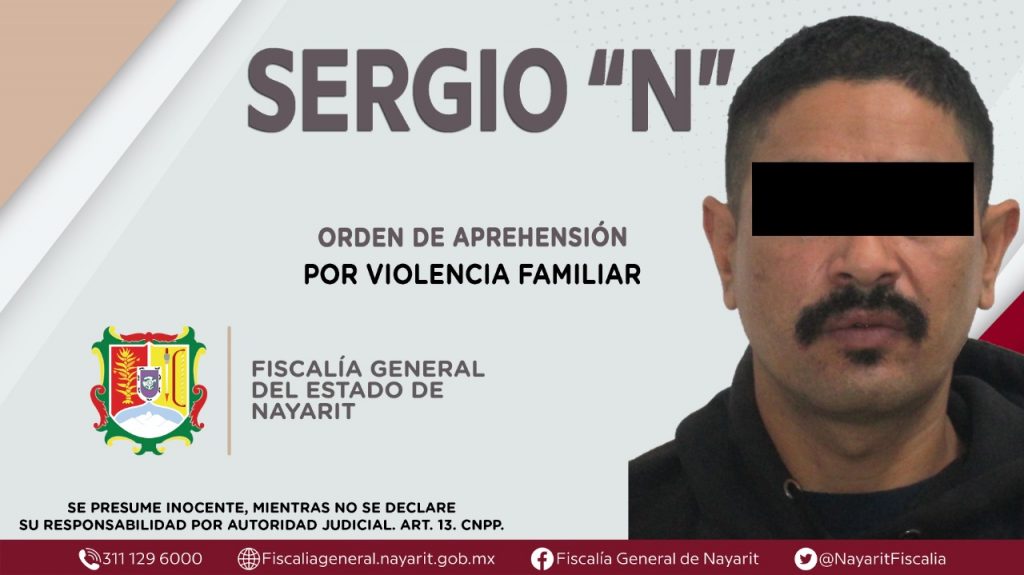 La Fiscalía General del Estado a través de la Agencia de Investigación Criminal dio cumplimiento a una orden de aprehensión en la capital nayarita contra Sergio “N”, por su presunta participación en hechos que bajo la apreciación de la ley configuran el delito de violencia familiar, cometido en agravio de una persona de sexo masculino de identidad reservada.