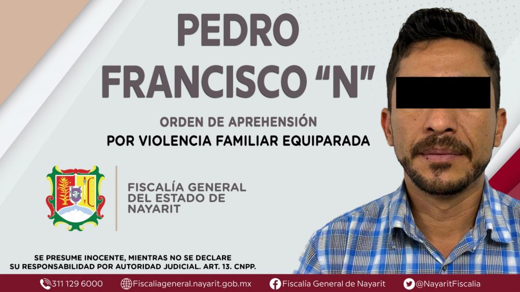 La Fiscalía General de Nayarit a través de la Agencia de Investigación Criminal dio cumplimiento a una orden de aprehensión en la capital nayarita contra Pedro Francisco “N”, por su presunta participación en hechos que según la ley configuran el delito de violencia familiar equiparada, cometido en agravio de una mujer de identidad reservada.