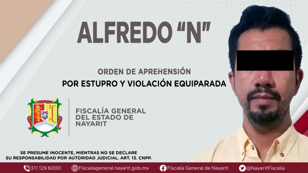 Elementos de la Agencia de Investigación Criminal de Nayarit ejecutaron una orden de aprehensión en la ciudad de Tepic contra Alfredo “N”, por su presunta participación en hechos que según apreciación de la ley configuran los delitos de estupro y violación equiparada, cometidos en contra de un adolescente de identidad reservada.