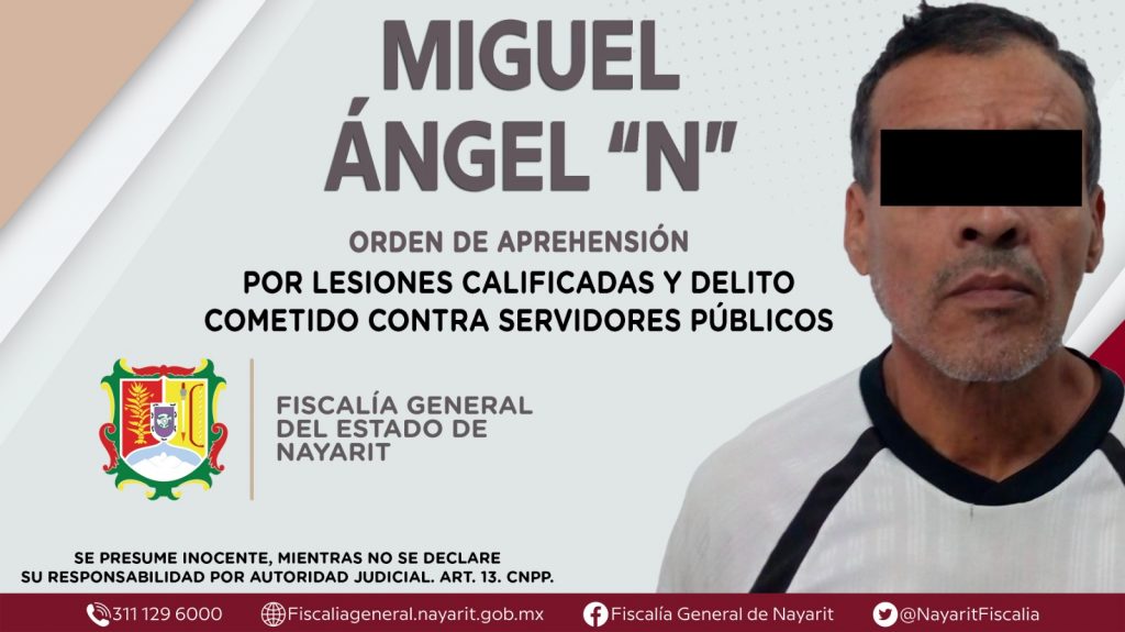 Elementos de la Agencia de Investigación Criminal dieron cumplimiento a una orden de aprehensión en el municipio de Bahía de Banderas contra Miguel Ángel “N”, por su presunta participación en hechos que bajo la apreciación de la ley configuran los delitos de lesiones calificados y delito cometido contra servidores públicos, en agravio de una persona de sexo masculino de identidad reservada.