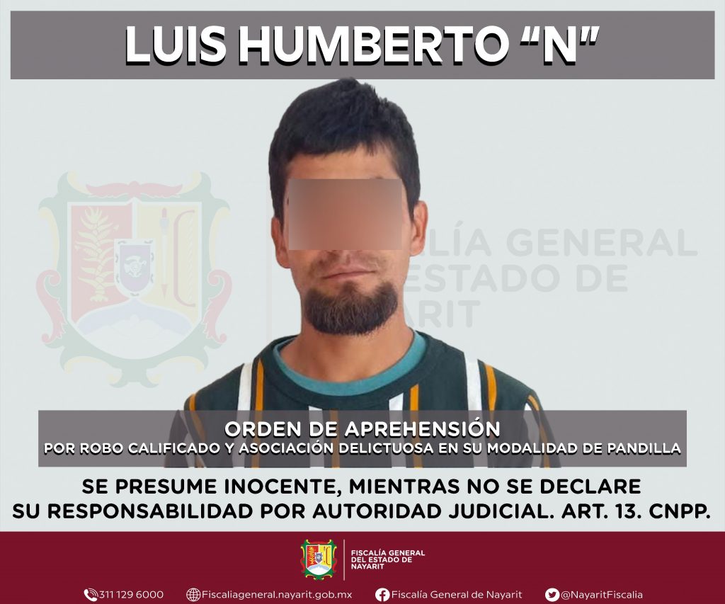 La Fiscalía General del Estado a través de la Agencia de Investigación Criminal cumplimentó una orden de reaprehensión en la capital nayarita contra Luis Humberto “N”, por su presunta participación en hechos que bajo apreciación de la ley configuran los delitos de robo calificado y asociación delictuosa en su modalidad de pandilla, cometido en agravio de una persona de sexo femenino de identidad reservada y de la sociedad.